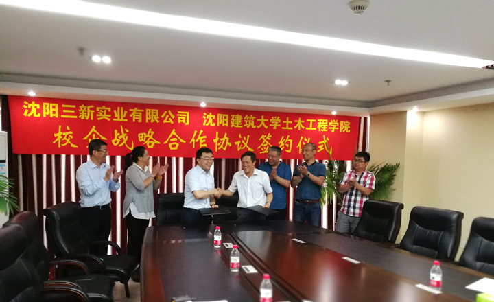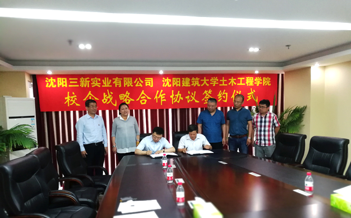 2017年6月14日,沈陽(yáng)建筑大學(xué)土木工程學(xué)院賈連光書(shū)記一行參觀(guān)了三新集團(tuán)廠(chǎng)區(qū)及總部,并進(jìn)行了深入的會(huì)談。之后雙方正式簽訂戰(zhàn)略合作協(xié)議。雙方本著共同發(fā)展的目的,重點(diǎn)在人才培養(yǎng)、科技創(chuàng)新、技術(shù)交流等方面開(kāi)展廣泛、密切的合作。雙方希望通過(guò)建立密切、長(zhǎng)久及融洽的戰(zhàn)略合作伙伴關(guān)系,充分發(fā)揮高校和企業(yè)各自的技術(shù)和人才優(yōu)勢(shì),緊密合作,提升企業(yè)的研究水平和競(jìng)爭(zhēng)實(shí)力,同時(shí)增強(qiáng)學(xué)校應(yīng)用技術(shù)人才的培養(yǎng)能力,促進(jìn)工程技術(shù)類(lèi)應(yīng)用性學(xué)科的建設(shè)。協(xié)議的簽訂為進(jìn)一步完善公司產(chǎn)學(xué)研模式,提高專(zhuān)利成果的轉(zhuǎn)化速度,都有著重要促進(jìn)作用,同時(shí)為各自的今后發(fā)展增添新動(dòng)力。