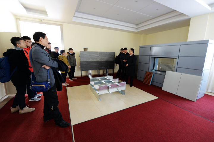 在揭牌儀式前,洪長禧總經(jīng)理及公司領(lǐng)導(dǎo)首先陪同客人參觀了公司生產(chǎn)基地及產(chǎn)品展廳,師生們對(duì)我公司先進(jìn)的裝備及產(chǎn)品贊不絕口,尤其是裝配式建筑展品給師生們留下深刻的印象。