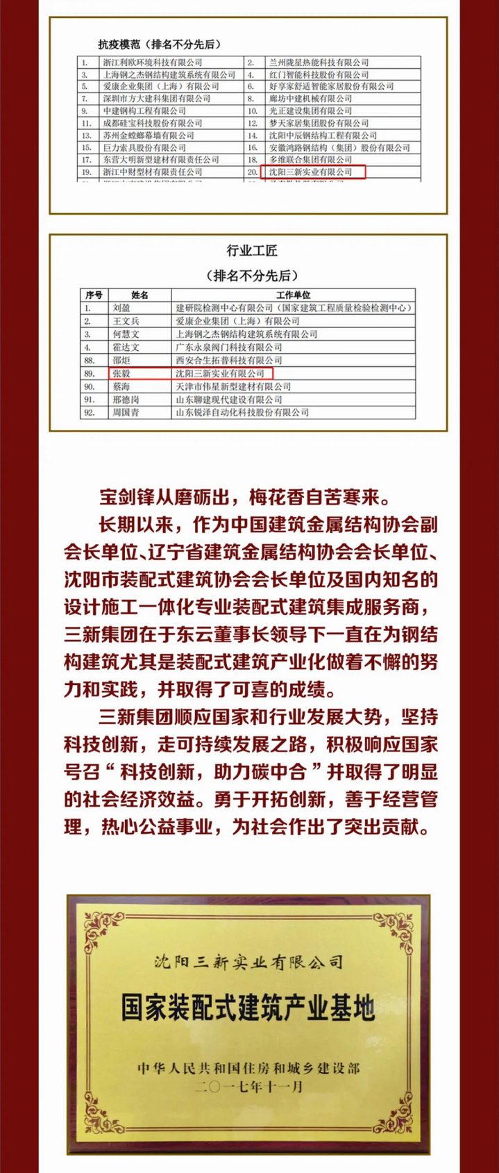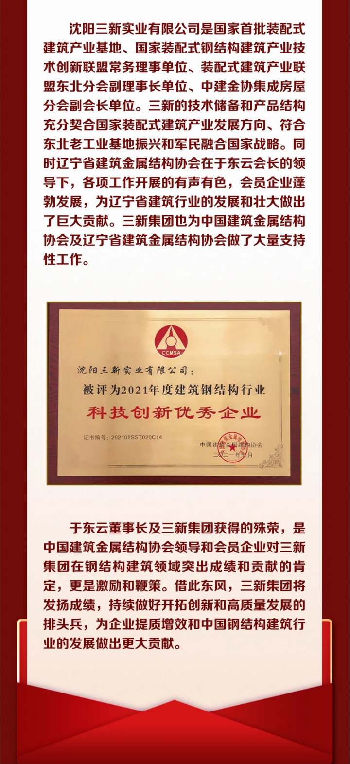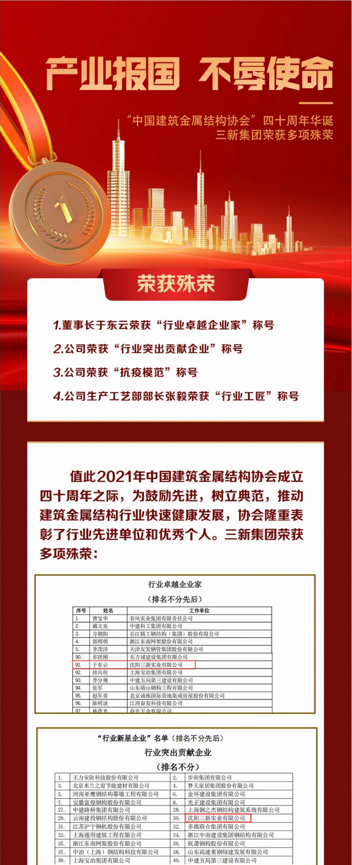 產(chǎn)業(yè)報國 不辱使命——“中國建筑金屬結(jié)構(gòu)協(xié)會”四十周年華誕,三新集團(tuán)榮獲多項殊榮