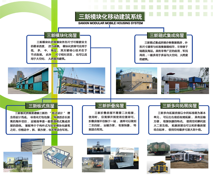 三新模塊化移動(dòng)建筑系統(tǒng)是針對日益增加的便捷移動(dòng)居住需求開發(fā)的系列產(chǎn)品,包括三新模塊化移動(dòng)建筑和三新箱式集成建筑。